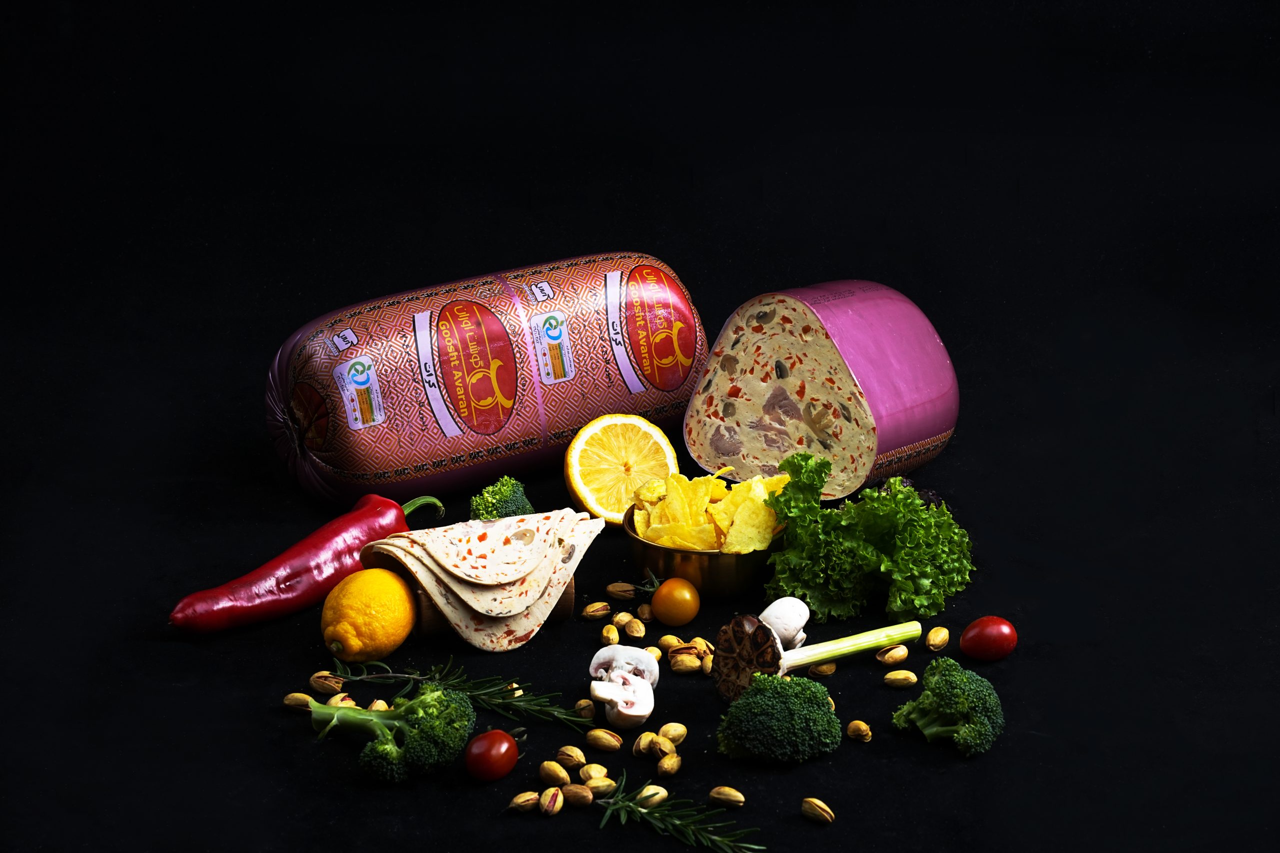 ژامبون كرات 70%یک محصول خاص که سبزیجاتی مثل فلفل دلمه ، قارچ بلنچ شده ، هویج و ادویه های گیاهی و طبیعی داره به همراه 70 % ران و سینه مرغ . سینه در زمینه اصلی به کار رفته و برای تیکه های نمایشی از ران مرغ استفاده شده .برش های این محصول به صورت سه گوش هست این سه گوش بودنش علاوه بر اینکه ظاهر جذابی داره ، کار شما رو برای رول درست کردن هم راحت میکنه. این ژامبون ورق های با ضخامت 1 تا 1.5داره و هم به صورت رول 5 کیلویی و هم وکیوم 200 گرمی قابل تهیه است.
